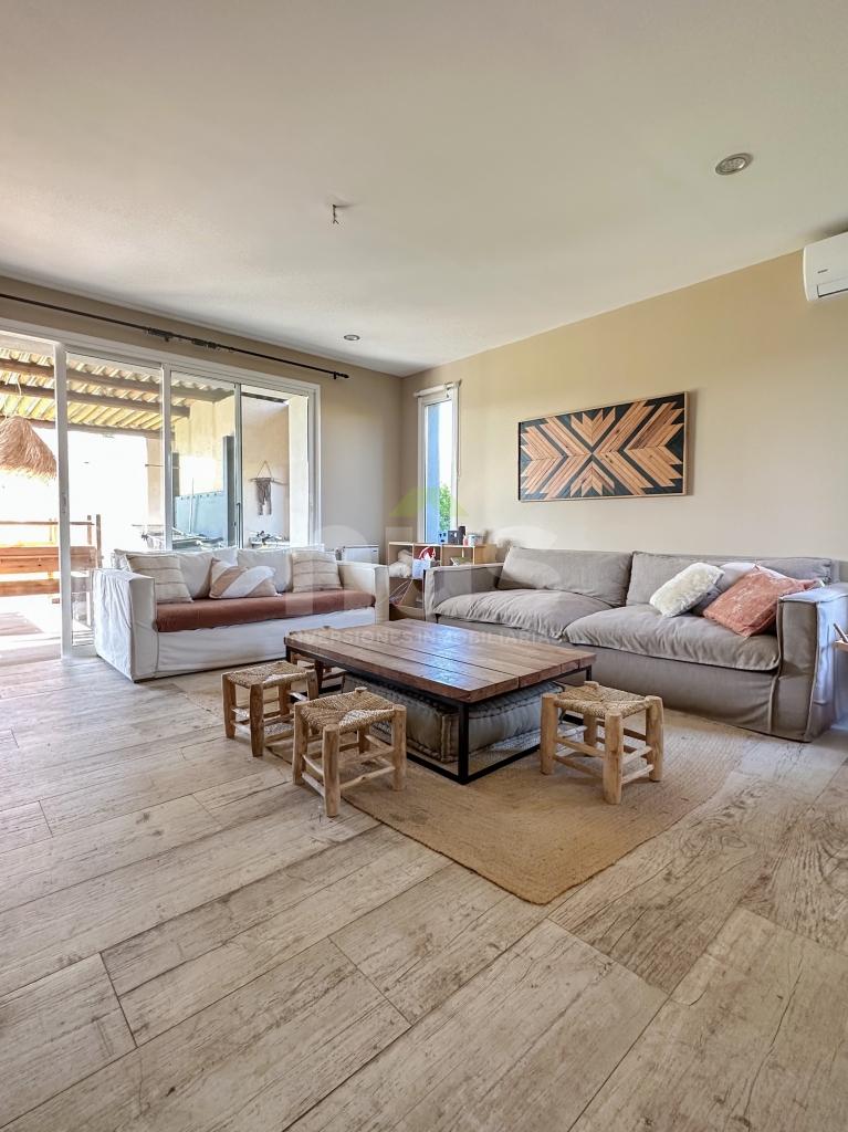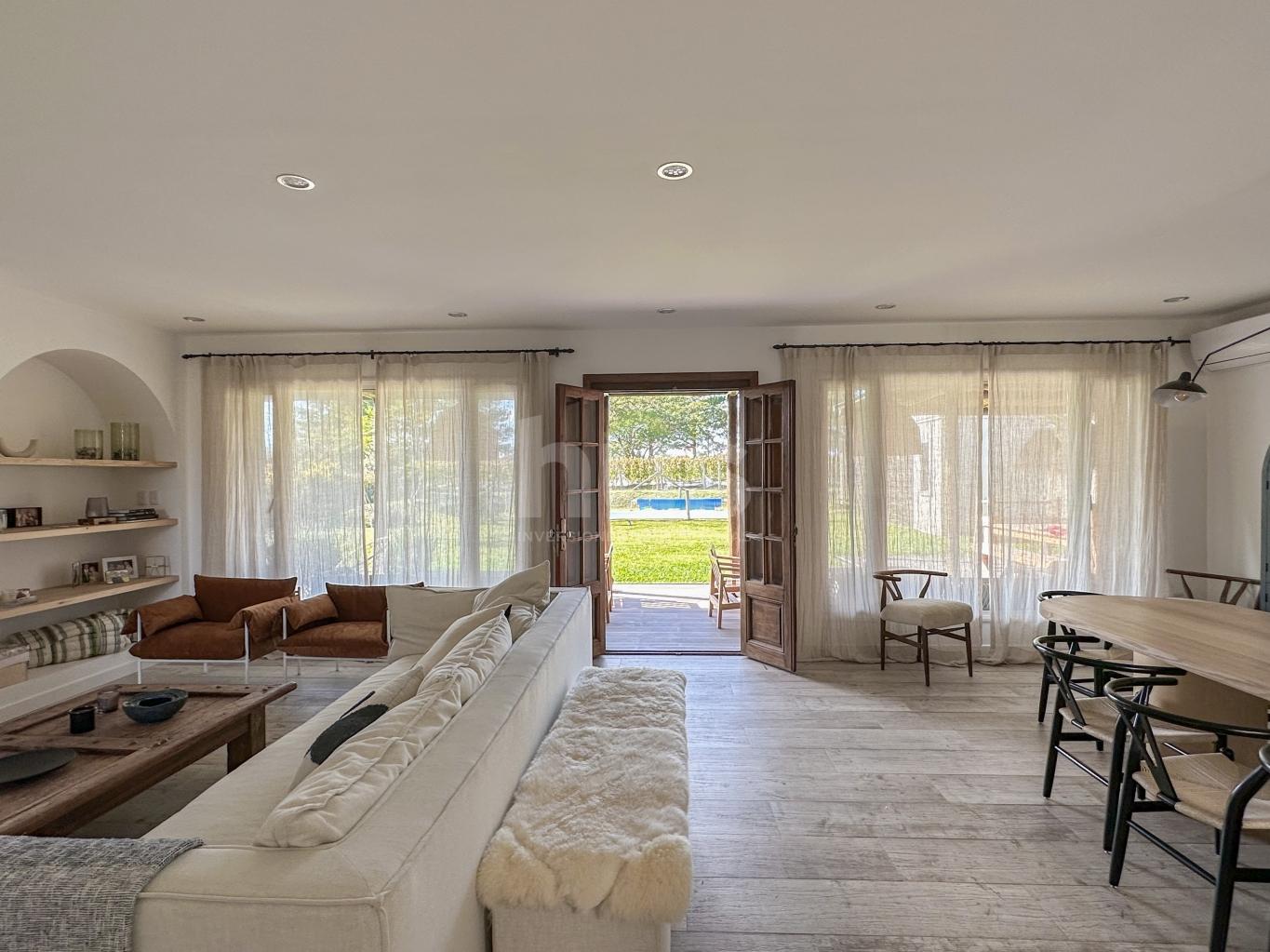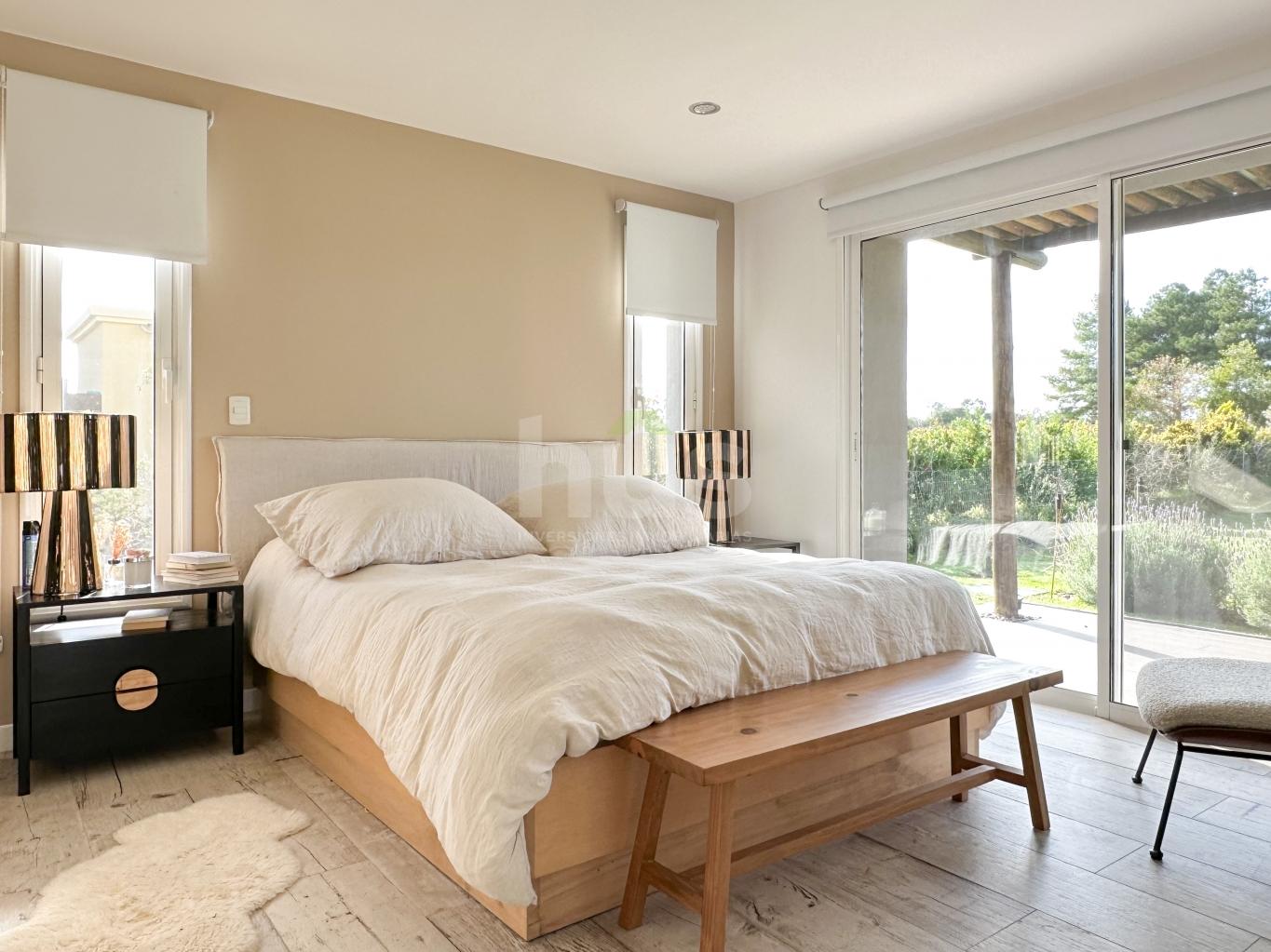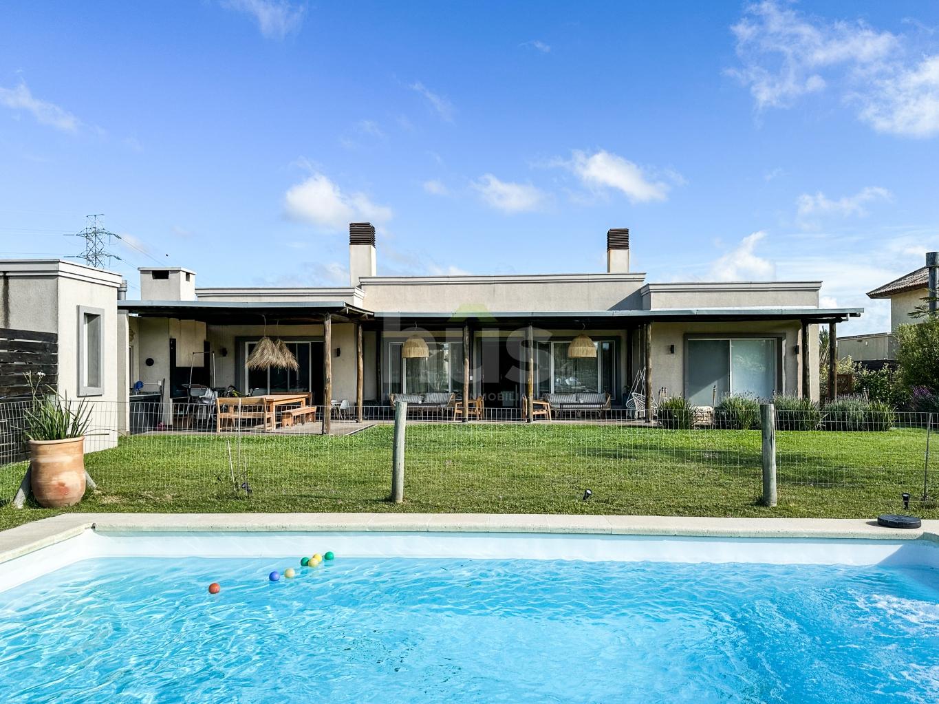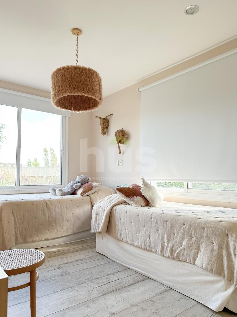 Divina casa en Viñedos de la Tahona desarrollada en una planta con fondo a viñedos.Hall de entrada con amplio living-comedor con estufa y ventanales amplios con salida al jardín.