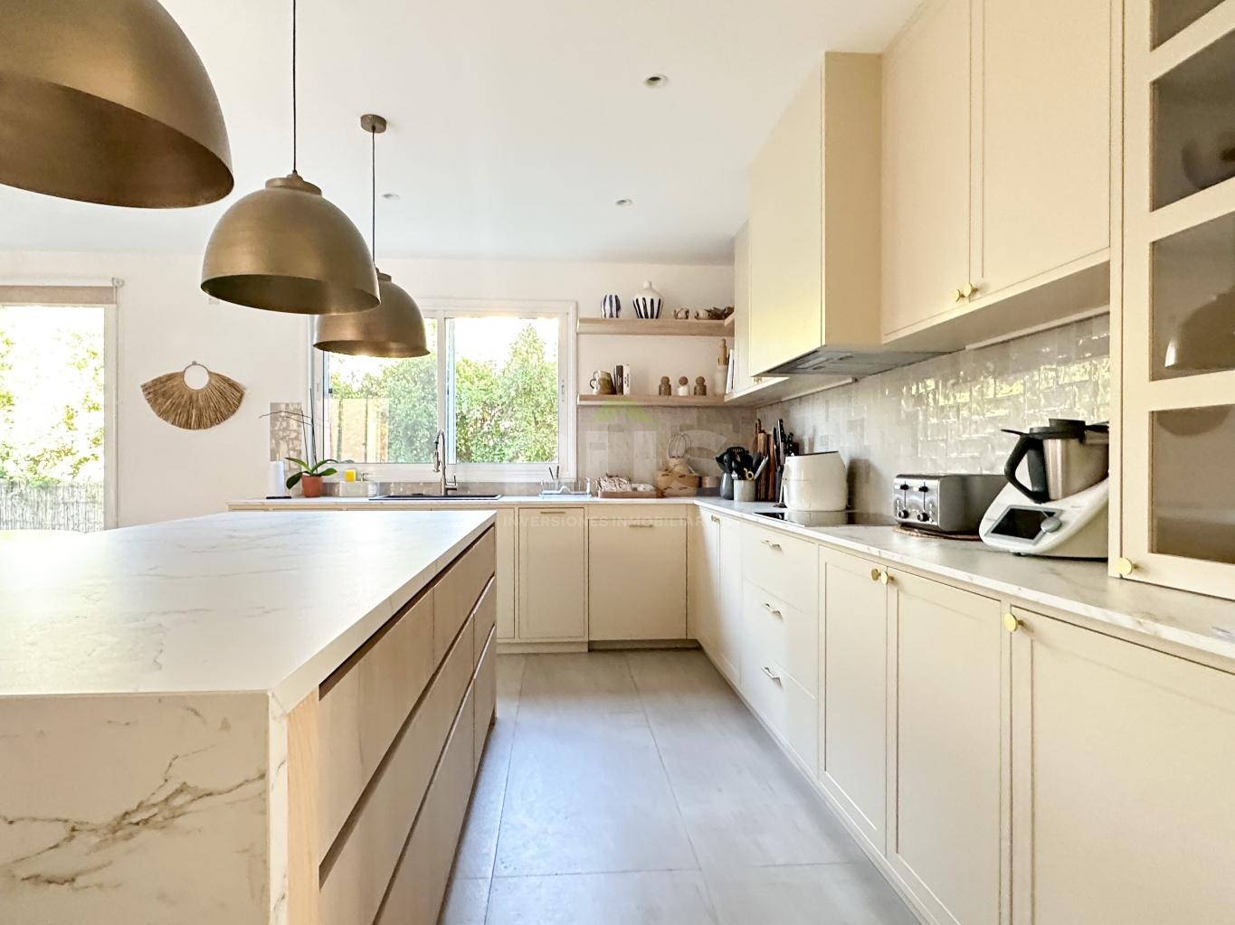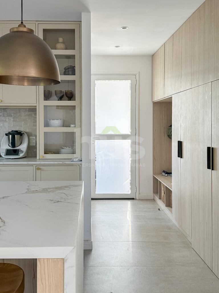 Cocina de revista con comedor diario, isla y cantidad de espacio de guardado. Lavadero y baño de servicio.