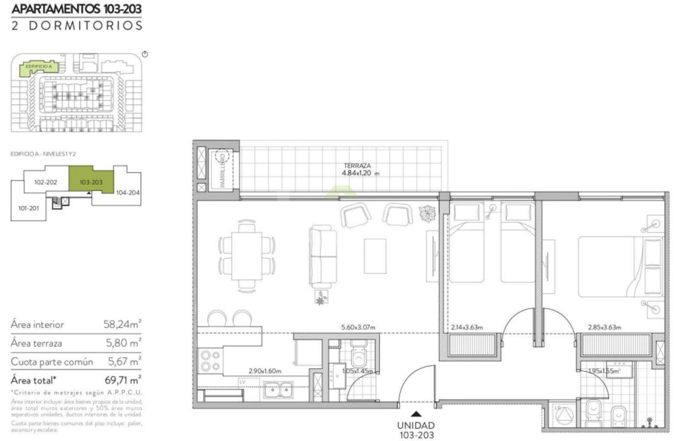 Amenities: piscina , solárium , áreas verdes , sector de juegos para niños y salón de usos múltiples con parrillero.
